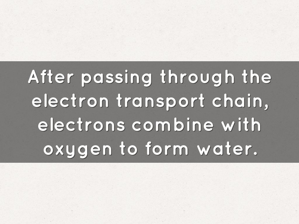 After passing through the electron transport chain, electrons combine with oxygen to form water.