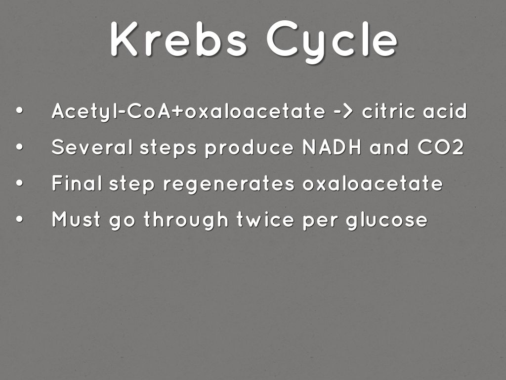 • Acetyl-CoA+oxaloacetate -> citric acid