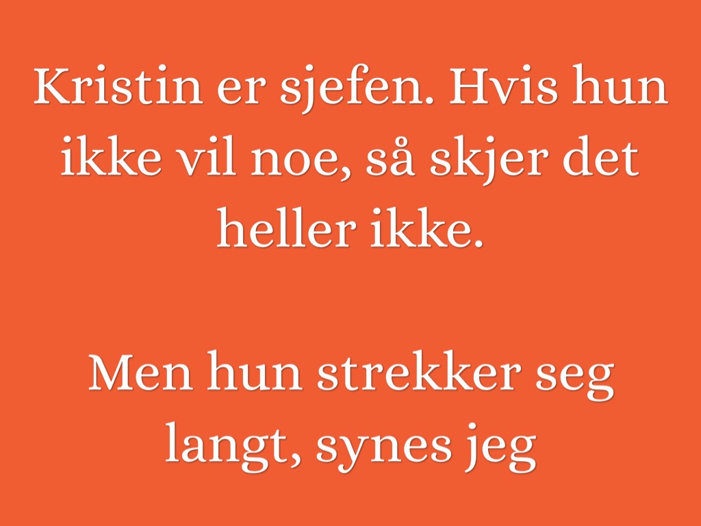 Kristin er sjefen. Hvis hun ikke vil noe, så skjer det heller ikke.