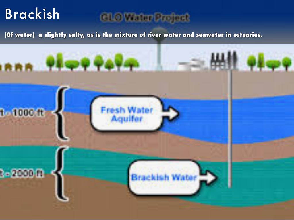 (Of water) a slightly salty, as is the mixture of river water and seawater in estuaries.