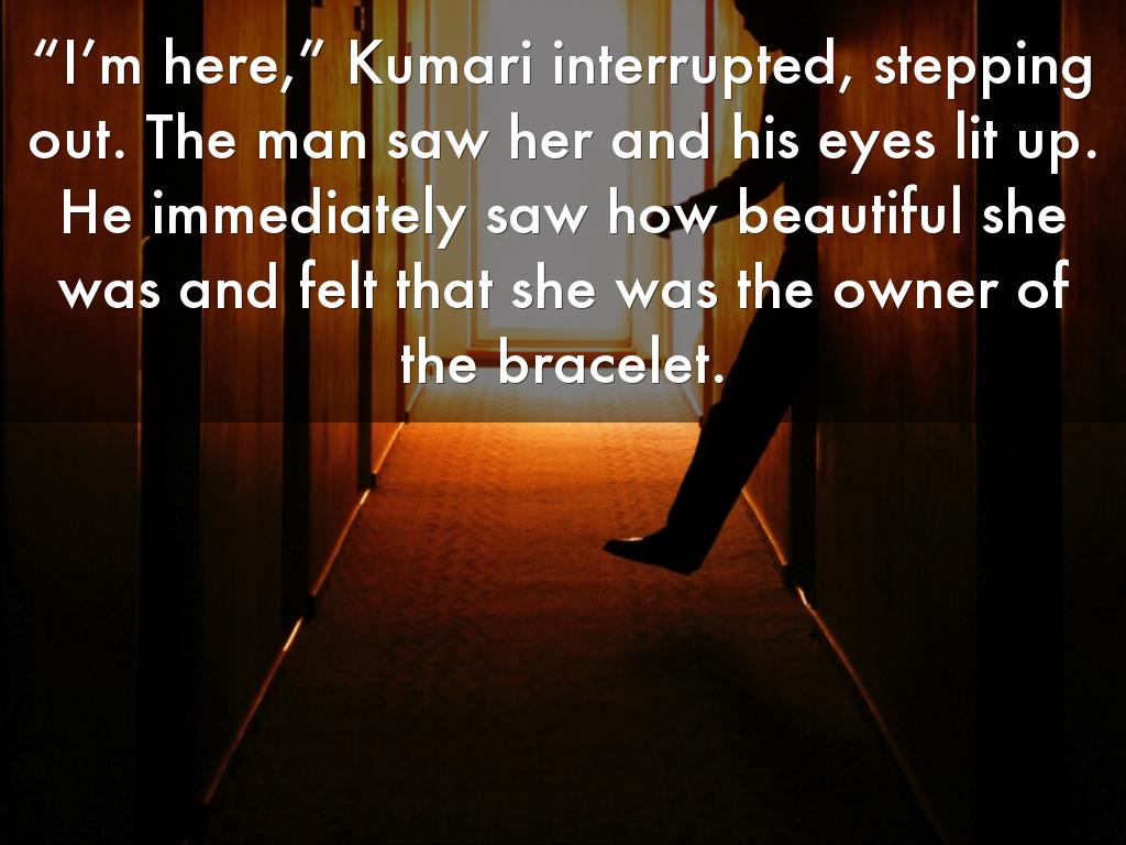 “I’m here,” Kumari interrupted, stepping out. The man saw her and his eyes lit up. He immediately saw how beautiful she was and felt that she was the owner of the bracelet.