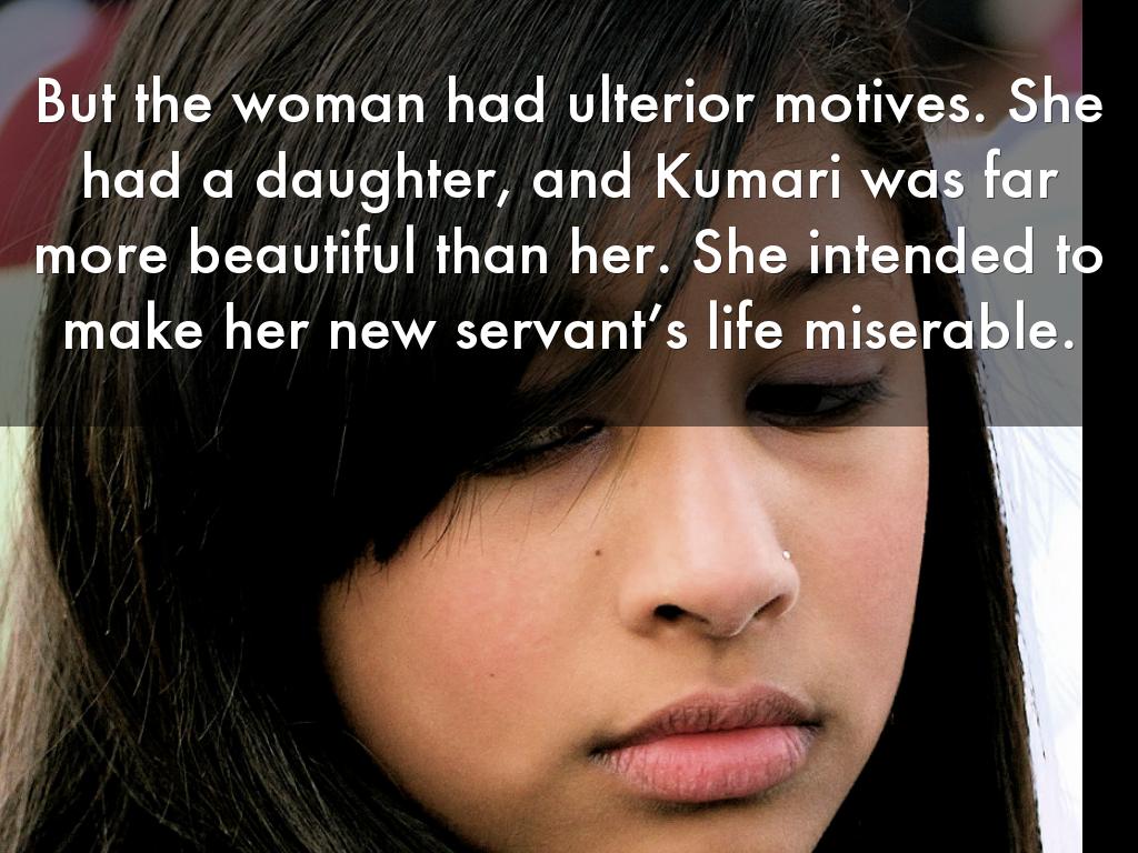 But the woman had ulterior motives. She had a daughter, and Kumari was far more beautiful than her. She intended to make her new servant’s life miserable.