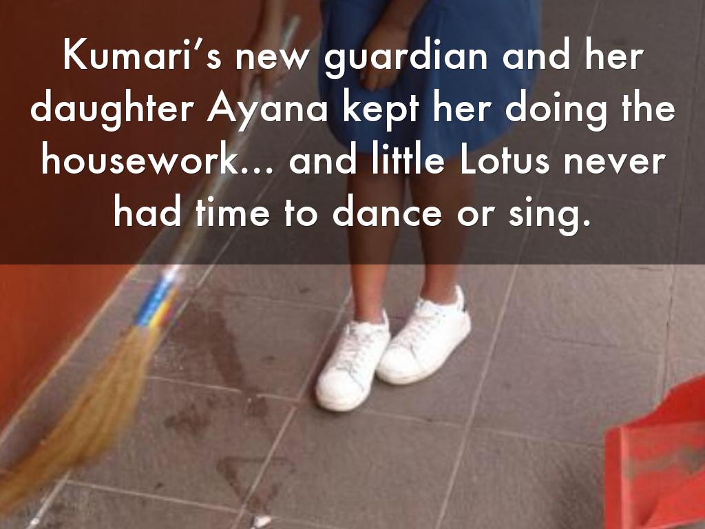 Kumari’s new guardian and her daughter Ayana kept her doing the housework... and little Lotus never had time to dance or sing.