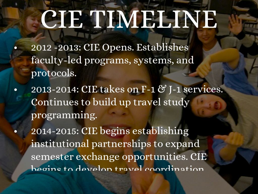 2013-2014: CIE takes on F-1 & J-1 services. Continues to build up travel study programming.