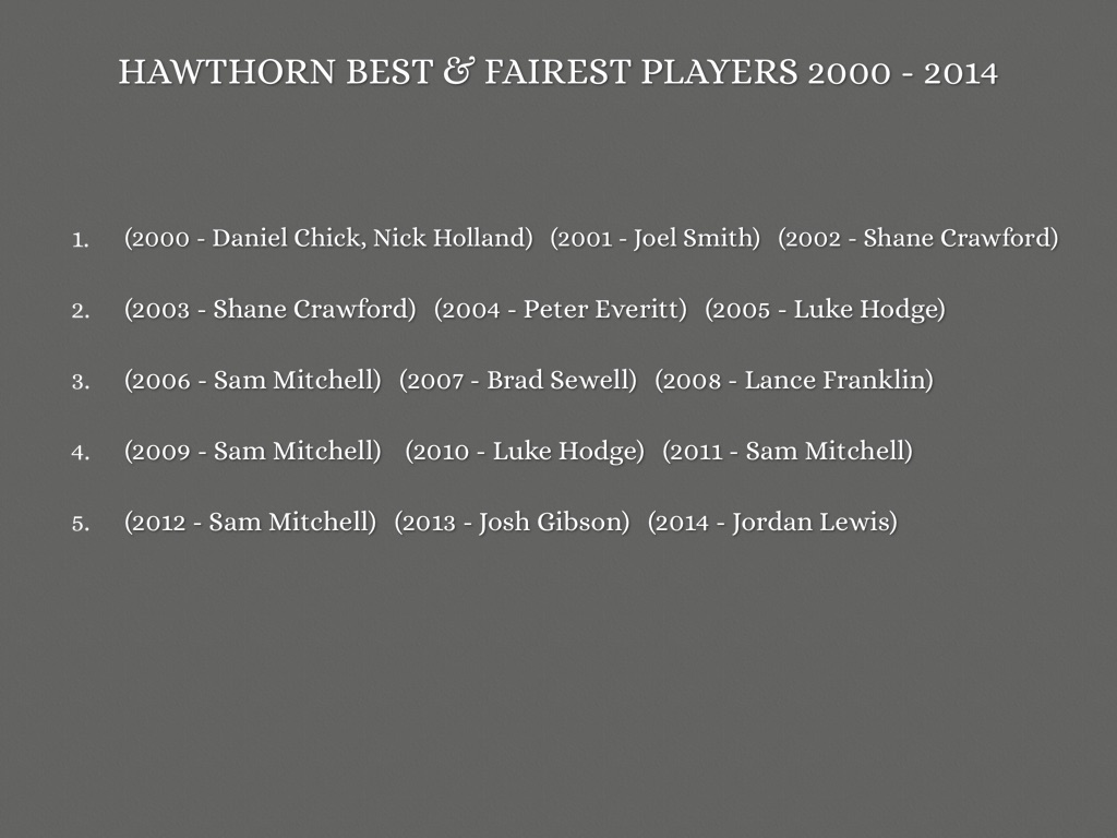 HAWTHORN BEST & FAIREST PLAYERS 2000 - 2014
