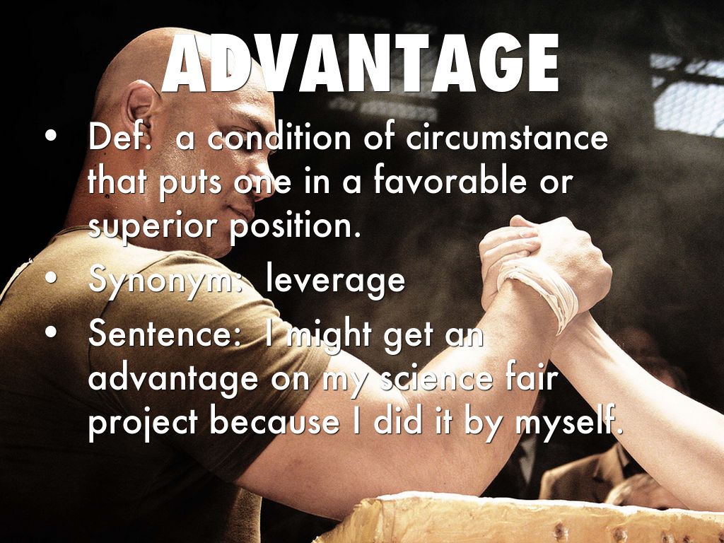 Def. a condition of circumstance that puts one in a favorable or superior position.