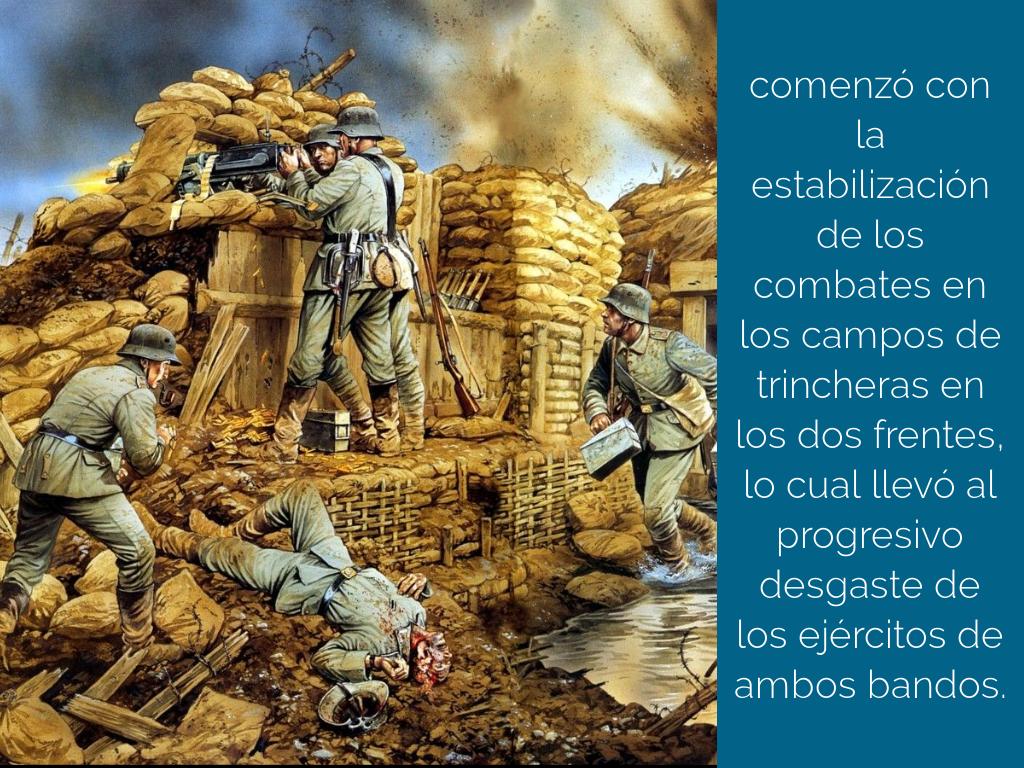 comenzó con la estabilización de los combates en los campos de trincheras en los dos frentes, lo cual llevó al progresivo desgaste de los ejércitos de ambos bandos.