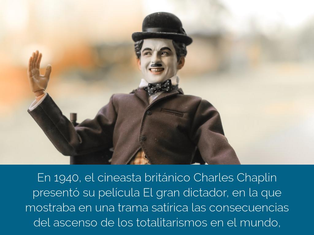 En 1940, el cineasta británico Charles Chaplin presentó su película El gran dictador, en la que mostraba en una trama satírica las consecuencias del ascenso de los totalitarismos en el mundo,