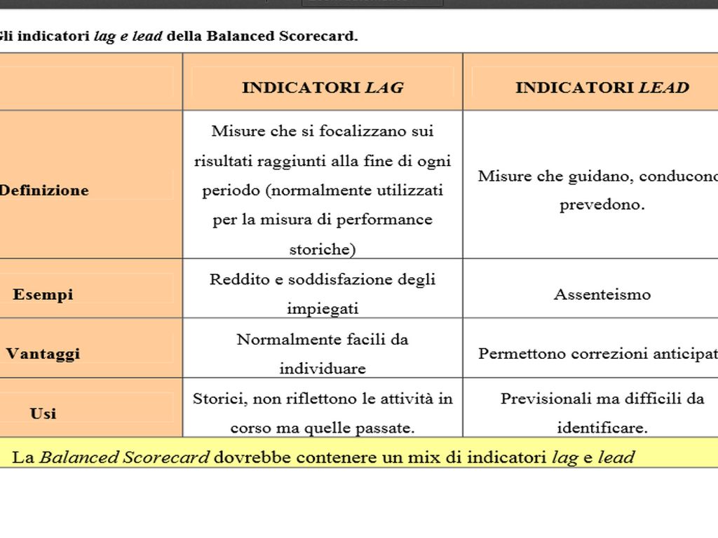 Nella BSC sono previsti 2 tipi differenti di indicatori: