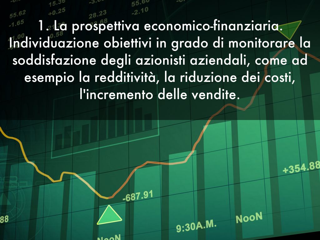 1. La prospettiva economico-finanziaria. Individuazione obiettivi in grado di monitorare la soddisfazione degli azionisti aziendali, come ad esempio la redditività, la riduzione dei costi, l'incremento delle vendite.