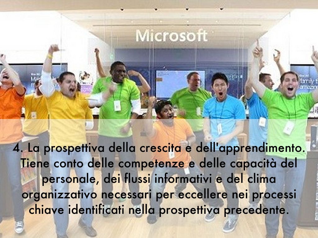 Tiene conto delle competenze e delle capacità del personale, dei flussi informativi e del clima organizzativo necessari per eccellere nei processi chiave identificati nella prospettiva precedente.