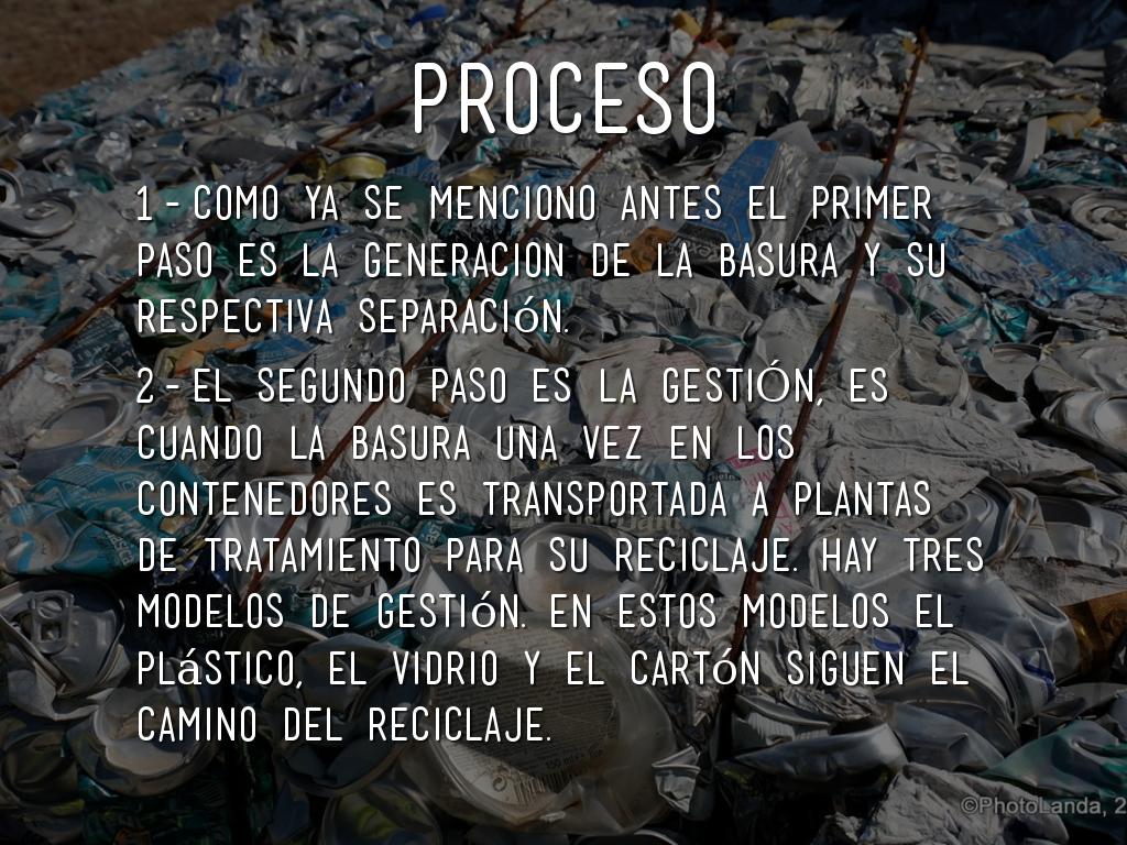 2-el segundo paso es LA GESTIÓN, es cuando La basura una vez en los contenedores es transportada a plantas de tratamiento para su reciclaje. Hay tres modelos de gestión. En estos modelos el plástico, el vidrio y el cartón siguen el camino del reciclaje.