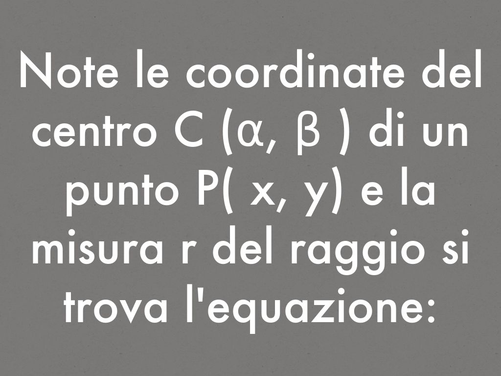 Note le coordinate del centro C (α, β ) di un punto P( x, y) e la misura r del raggio si trova l'equazione: