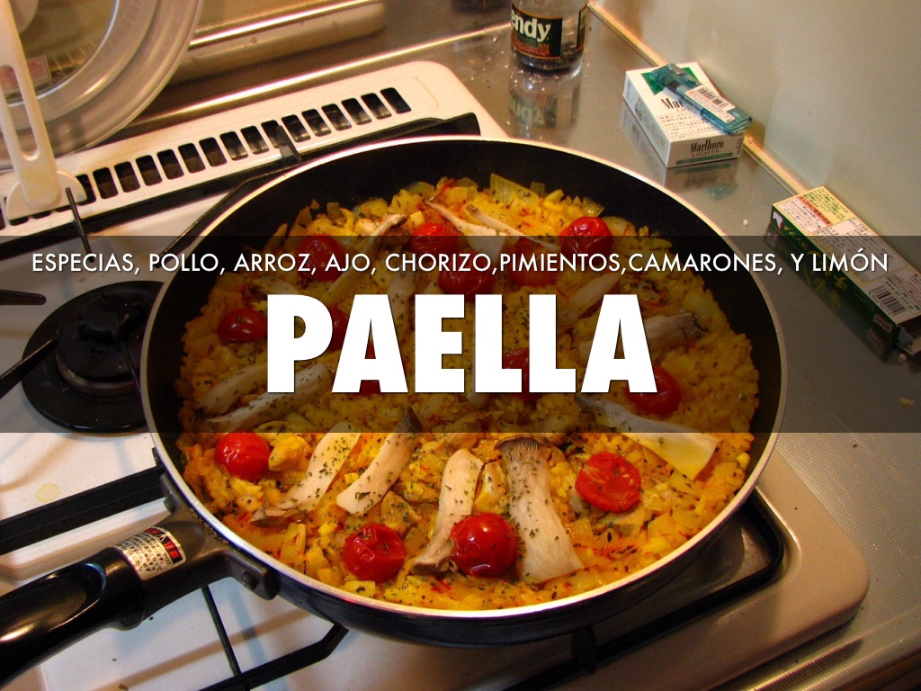 ESPECIAS, POLLO, ARROZ, AJO, CHORIZO,PIMIENTOS,CAMARONES, Y LIMÓN