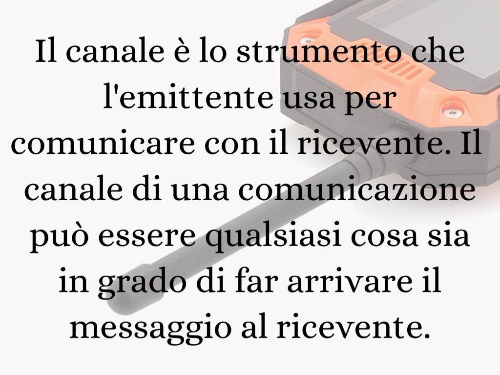 Il canale è lo strumento che l'emittente usa per comunicare con il ricevente. Il canale di una comunicazione può essere qualsiasi cosa sia in grado di far arrivare il messaggio al ricevente.