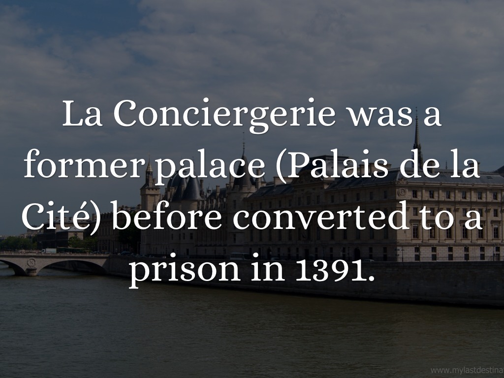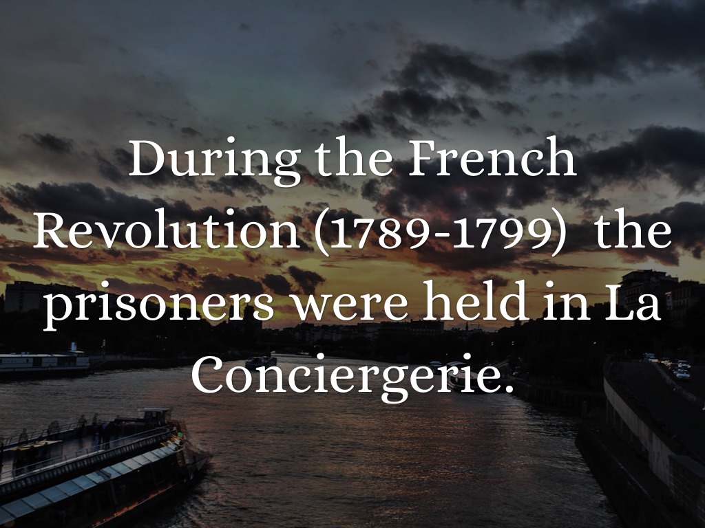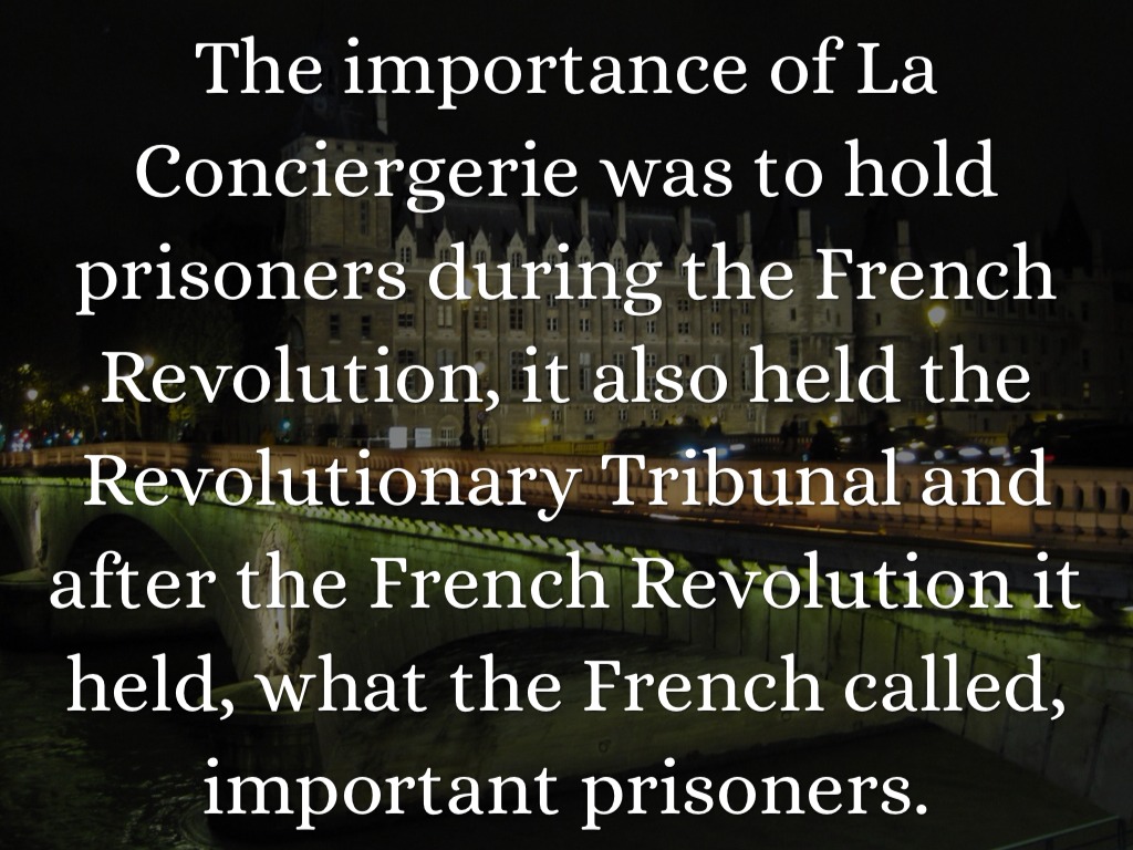The importance of La Conciergerie was to hold prisoners during the French Revolution, it also held the Revolutionary Tribunal and after the French Revolution it held, what the French called, important prisoners.