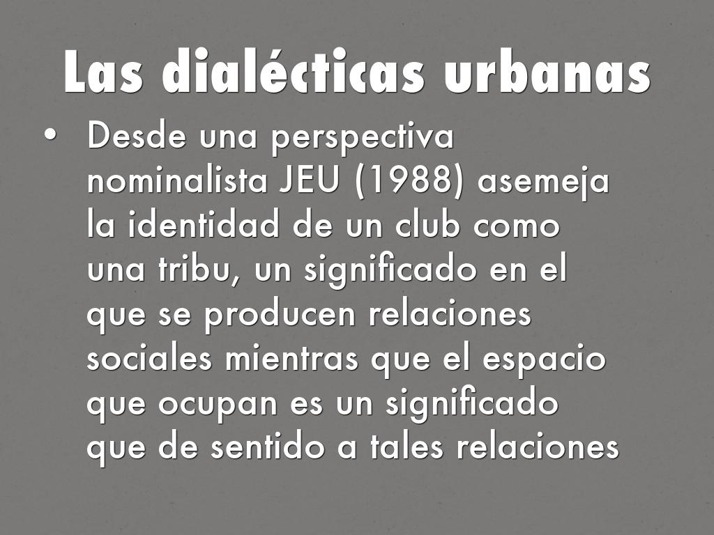 Desde una perspectiva nominalista JEU (1988) asemeja la identidad de un club como una tribu, un significado en el que se producen relaciones sociales mientras que el espacio que ocupan es un significado que de sentido a tales relaciones