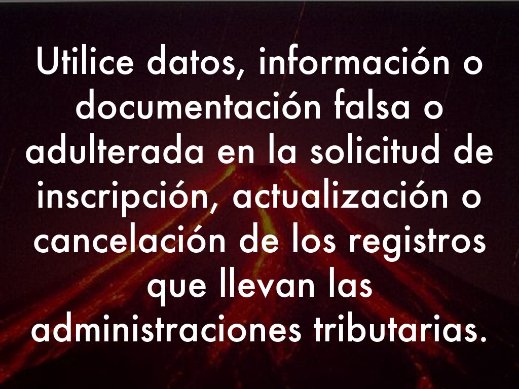 Utilice datos, información o documentación falsa o adulterada en la solicitud de inscripción, actualización o cancelación de los registros que llevan las administraciones tributarias.