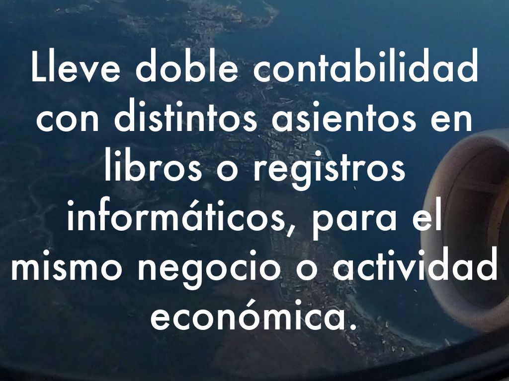 Lleve doble contabilidad con distintos asientos en libros o registros informáticos, para el mismo negocio o actividad económica.