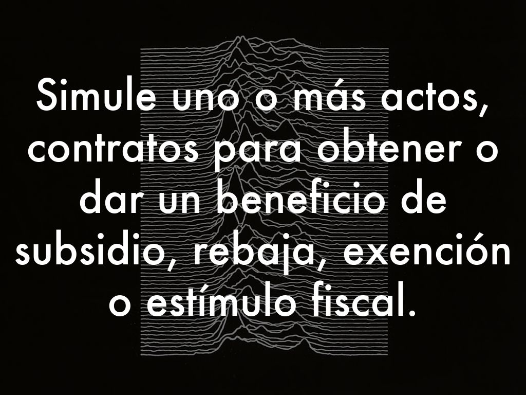 Simule uno o más actos, contratos para obtener o dar un beneficio de subsidio, rebaja, exención o estímulo fiscal.
