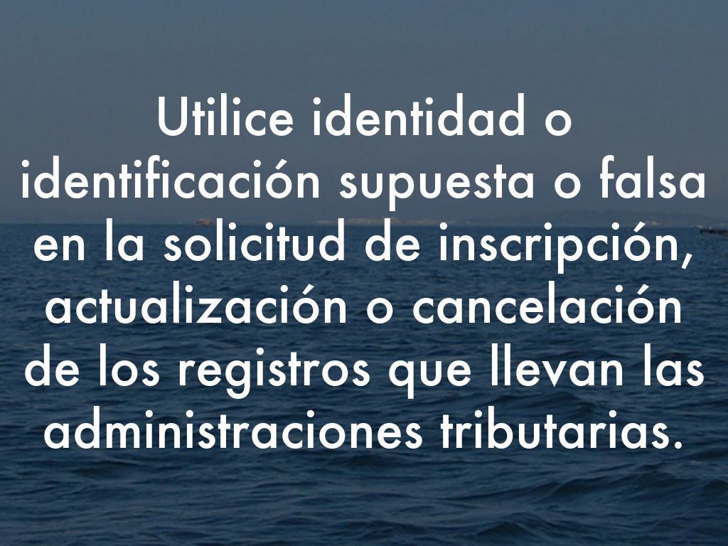 Utilice identidad o identificación supuesta o falsa en la solicitud de inscripción, actualización o cancelación de los registros que llevan las administraciones tributarias.
