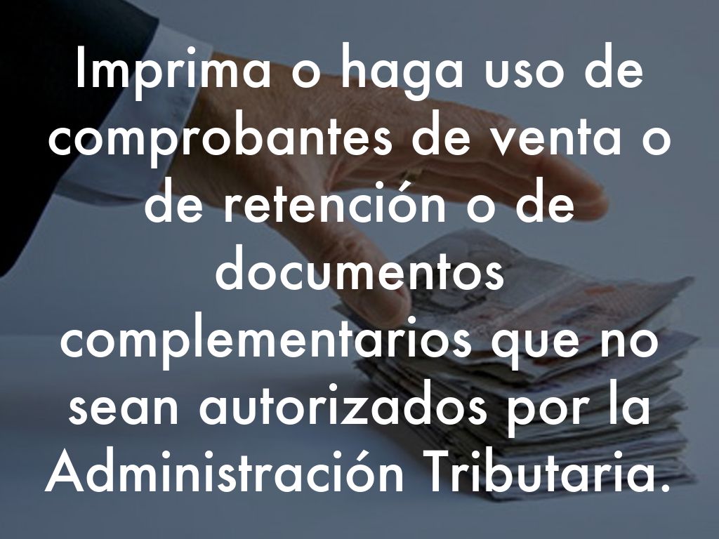 Imprima o haga uso de comprobantes de venta o de retención o de documentos complementarios que no sean autorizados por la Administración Tributaria.