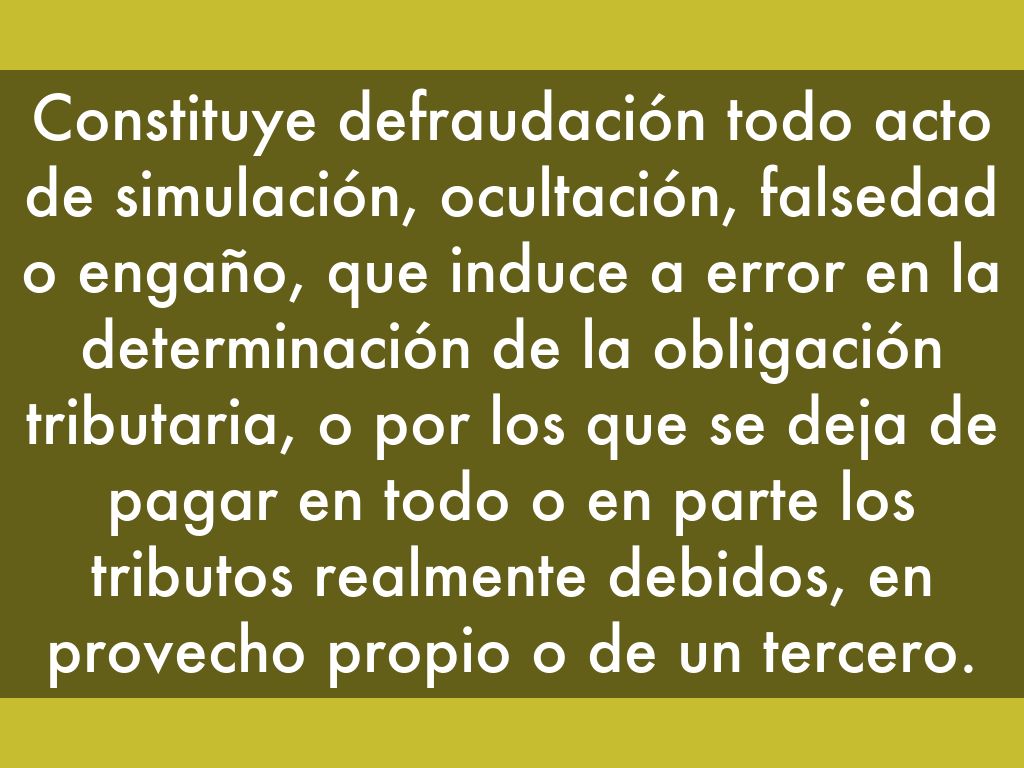 Constituye defraudación todo acto de simulación, ocultación, falsedad o engaño, que induce a error en la determinación de la obligación tributaria, o por los que se deja de pagar en todo o en parte los tributos realmente debidos, en provecho propio o de un tercero.