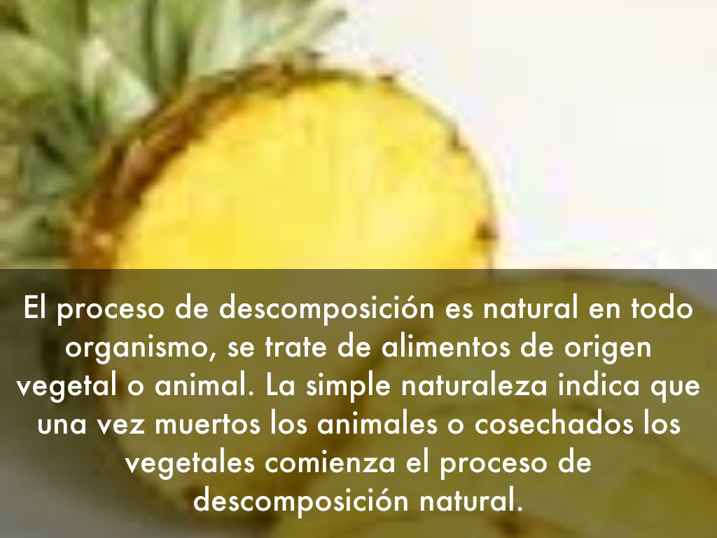 El proceso de descomposición es natural en todo organismo, se trate de alimentos de origen vegetal o animal. La simple naturaleza indica que una vez muertos los animales o cosechados los vegetales comienza el proceso de descomposición natural.