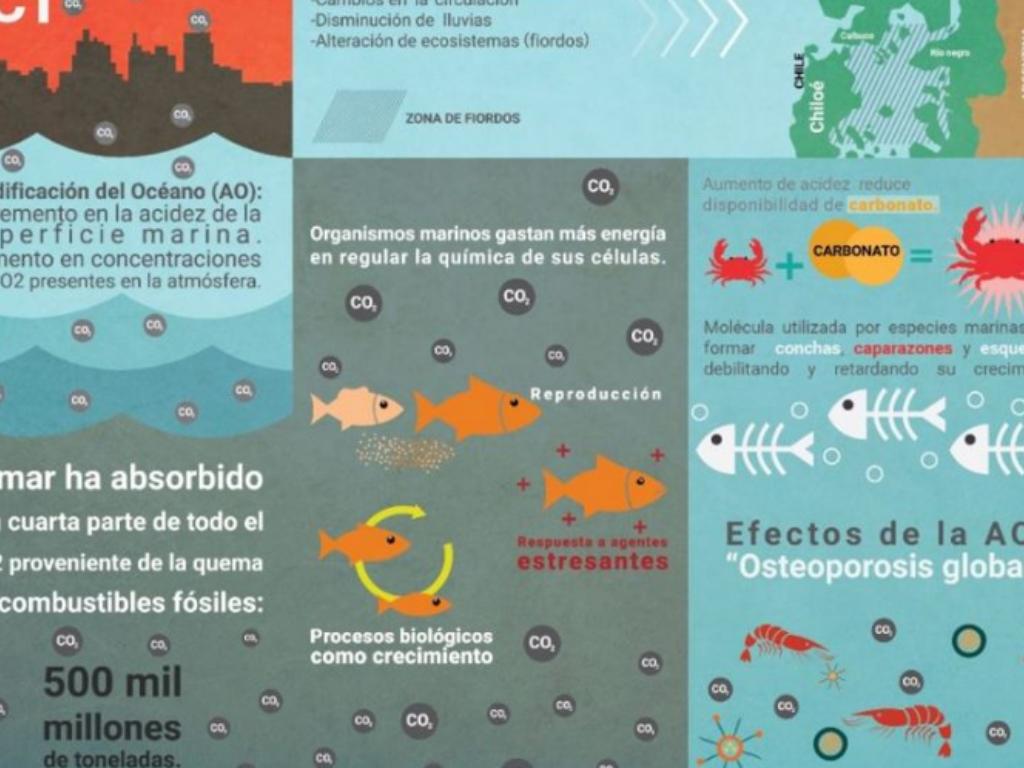 La acidificación de los océanos ocurre a medida que el agua de mar absorbe dióxido de carbono (consecuente a los cambios climáticos y la contaminación por parte de los combustibles fósiles y demás)y reacciona químicamente con él.