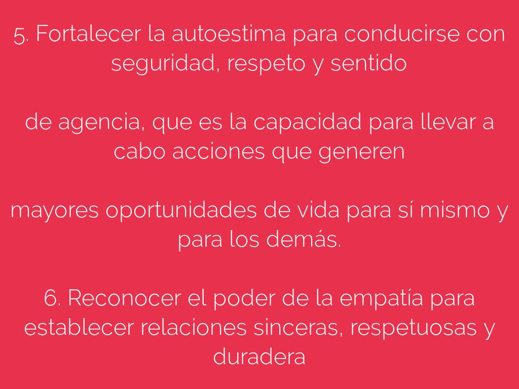 5. Fortalecer la autoestima para conducirse con seguridad, respeto y sentido