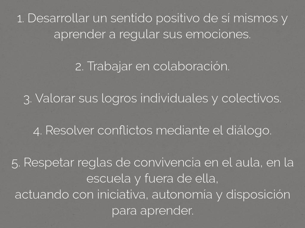 1. Desarrollar un sentido positivo de sí mismos y aprender a regular sus emociones.