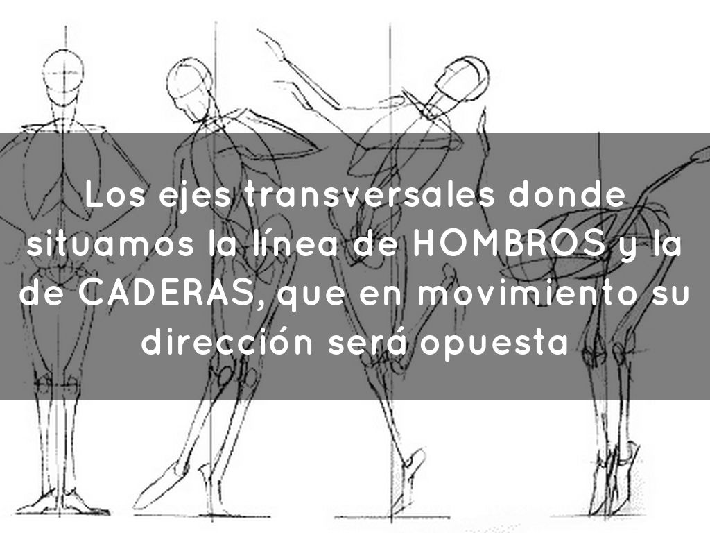 Los ejes transversales donde situamos la línea de HOMBROS y la de CADERAS, que en movimiento su dirección será opuesta