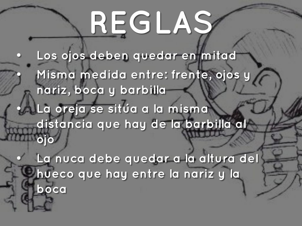 - Misma medida entre: frente, ojos y nariz, boca y barbilla