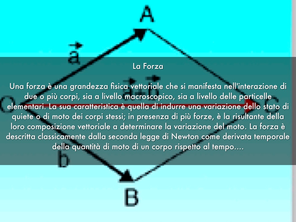 Una forza è una grandezza fisica vettoriale che si manifesta nell'interazione di due o più corpi, sia a livello macroscopico, sia a livello delle particelle elementari. La sua caratteristica è quella di indurre una variazione dello stato di quiete o di moto dei corpi stessi; in presenza di più forze, è la risultante della loro composizione vettoriale a determinare la variazione del moto. La forza è descritta classicamente dalla seconda legge di Newton come derivata temporale della quantità di moto di un corpo rispetto al tempo.
