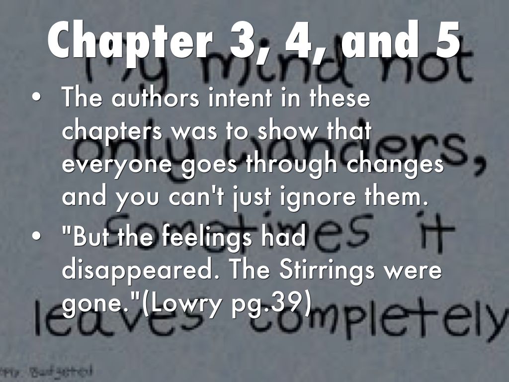 "But the feelings had disappeared. The Stirrings were gone."(Lowry pg.39)
