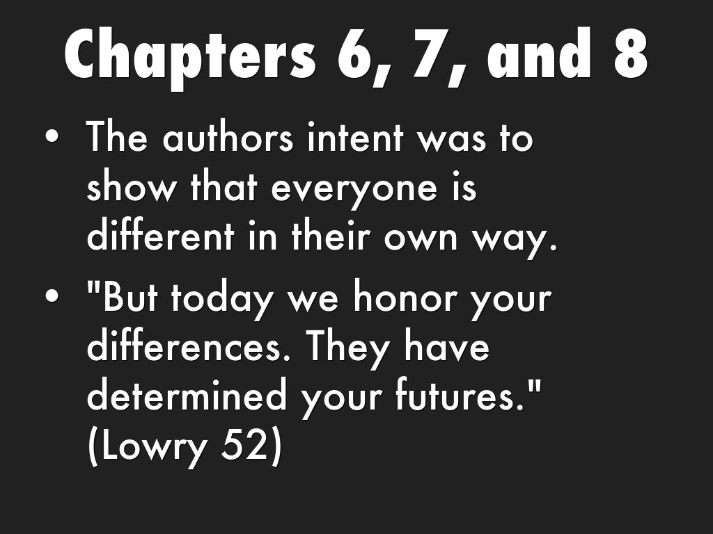 "But today we honor your differences. They have determined your futures."(Lowry 52)