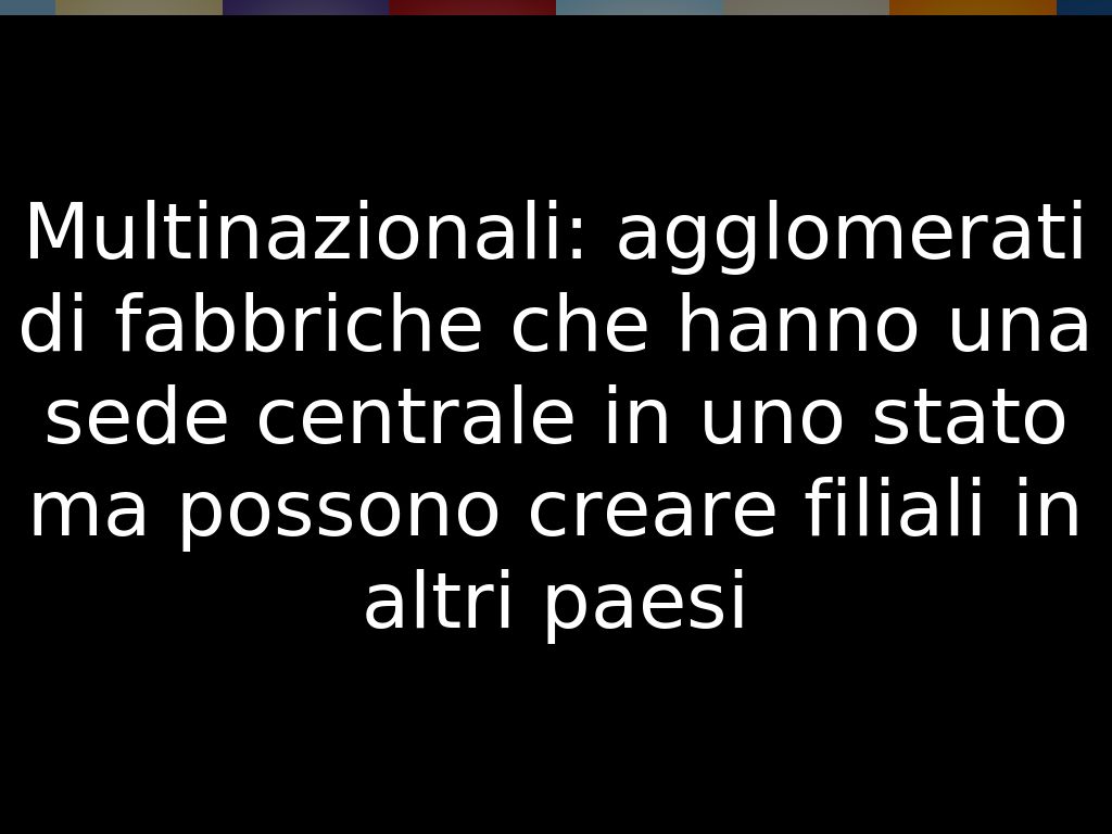 Multinazionali: agglomerati di fabbriche che hanno una sede centrale in uno stato ma possono creare filiali in altri paesi