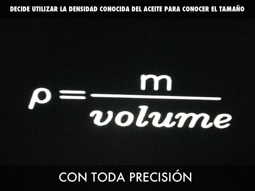 DECIDE UTILIZAR LA DENSIDAD CONOCIDA DEL ACEITE PARA CONOCER EL TAMAÑO