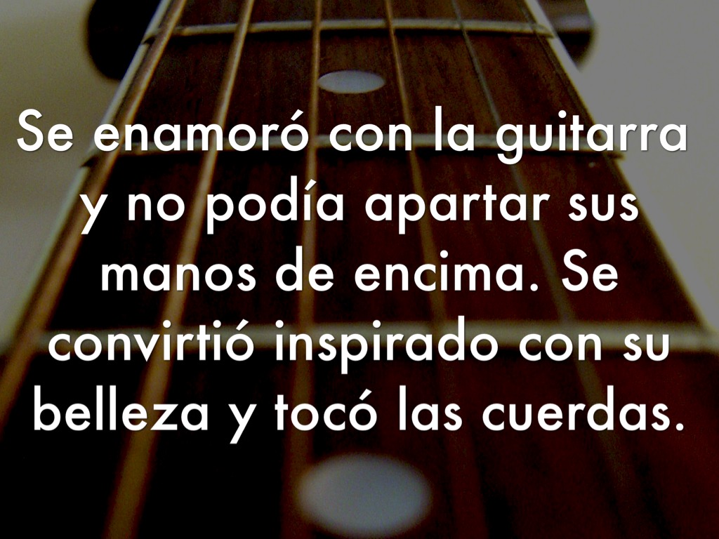 Se enamoró con la guitarra y no podía apartar sus manos de encima. Se convirtió inspirado con su belleza y tocó las cuerdas.