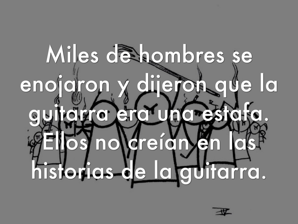 Miles de hombres se enojaron y dijeron que la guitarra era una estafa. Ellos no creían en las historias de la guitarra.