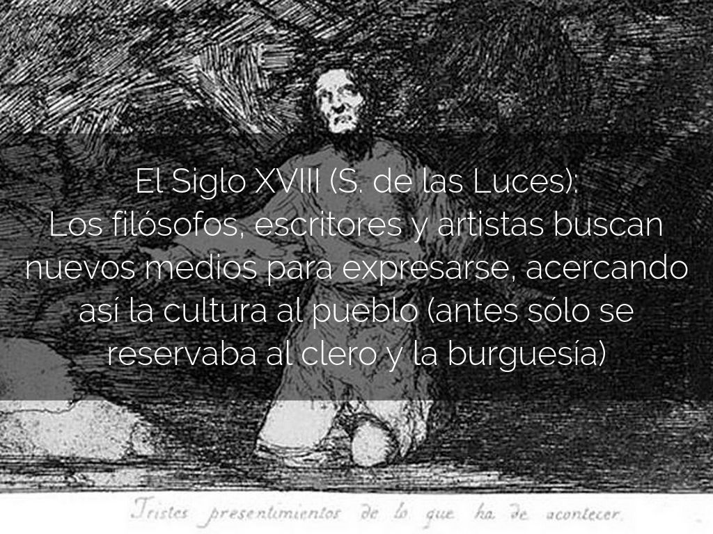 El Siglo XVIII (S. de las Luces): Los filósofos, escritores y artistas buscan nuevos medios para expresarse, acercando así la cultura al pueblo (antes sólo se reservaba al clero y la burguesía)