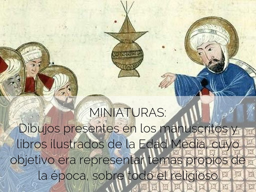 MINIATURAS: Dibujos presentes en los manuscritos y libros ilustrados de la Edad Media, cuyo objetivo era representar temas propios de la época, sobre todo el religioso