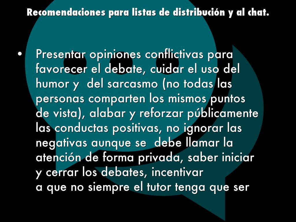 Recomendaciones para listas de distribución y al chat.