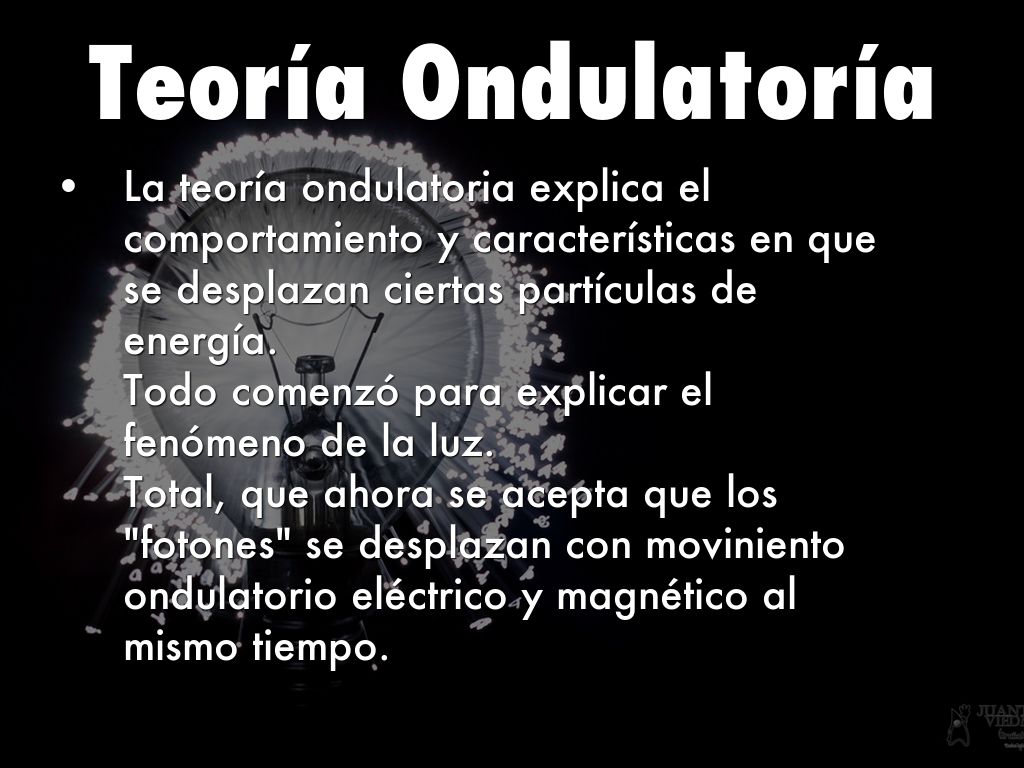 La teoría ondulatoria explica el comportamiento y características en que se desplazan ciertas partículas de energía.