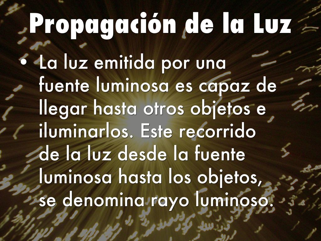 La luz emitida por una fuente luminosa es capaz de llegar hasta otros objetos e iluminarlos. Este recorrido de la luz desde la fuente luminosa hasta los objetos, se denomina rayo luminoso.