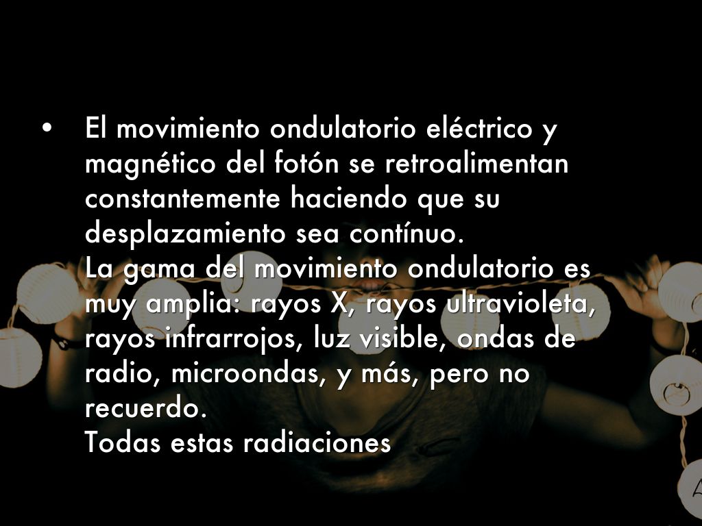 La gama del movimiento ondulatorio es muy amplia: rayos X, rayos ultravioleta, rayos infrarrojos, luz visible, ondas de radio, microondas, y más, pero no recuerdo.