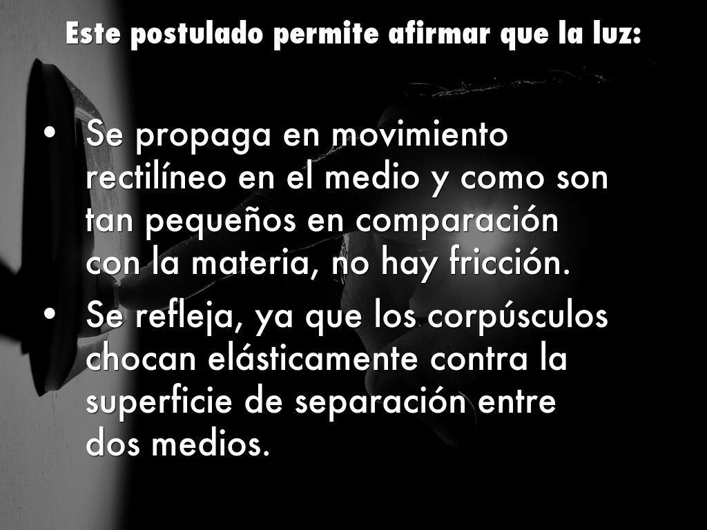 Esta teoría supone que la luz está formada por partículas materiales (llamadas corpúsculos) que son emitidos por los cuerpos que reflejan la luz a gran velocidad.