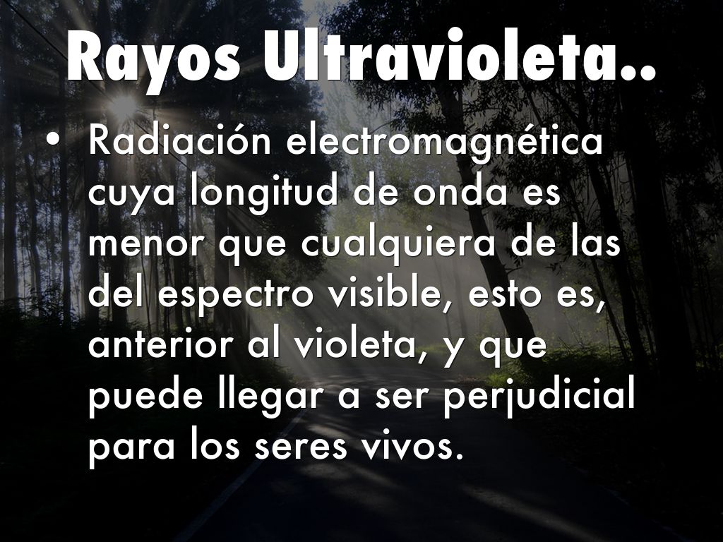 Radiación electromagnética cuya longitud de onda es menor que cualquiera de las del espectro visible, esto es, anterior al violeta, y que puede llegar a ser perjudicial para los seres vivos.
