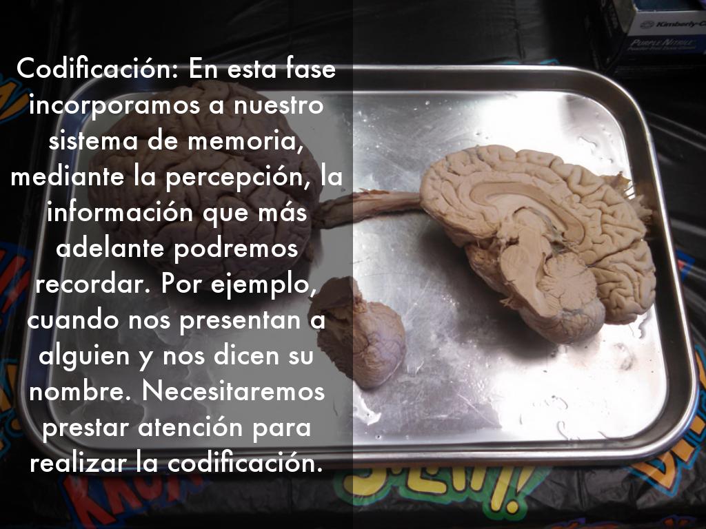 Codificación: En esta fase incorporamos a nuestro sistema de memoria, mediante la percepción, la información que más adelante podremos recordar. Por ejemplo, cuando nos presentan a alguien y nos dicen su nombre. Necesitaremos prestar atención para realizar la codificación.