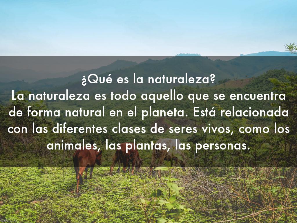 ¿Qué es la naturaleza? La naturaleza es todo aquello que se encuentra de forma natural en el planeta. Está relacionada con las diferentes clases de seres vivos, como los animales, las plantas, las personas.
